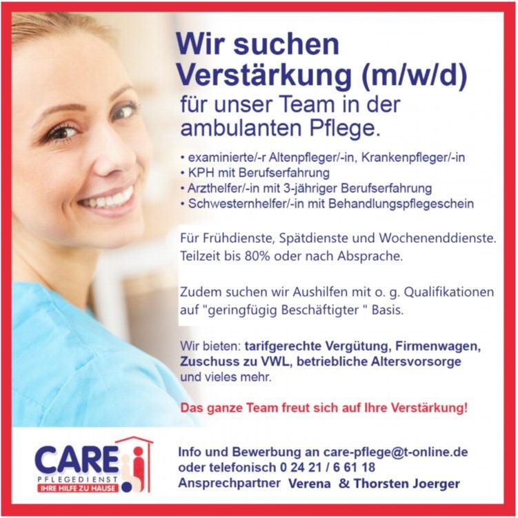 Info und Bewerbung an care-pflege@t-online.de